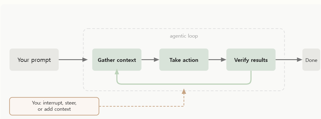 사용자가 Promt 를 날리면 아래와 같은 agentic loop 의 과정을 거친다고 했다.